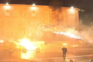 Protestuesit e PD hedhin flakadanë, policia i shpërndan me gaz lotsjellës (foto)