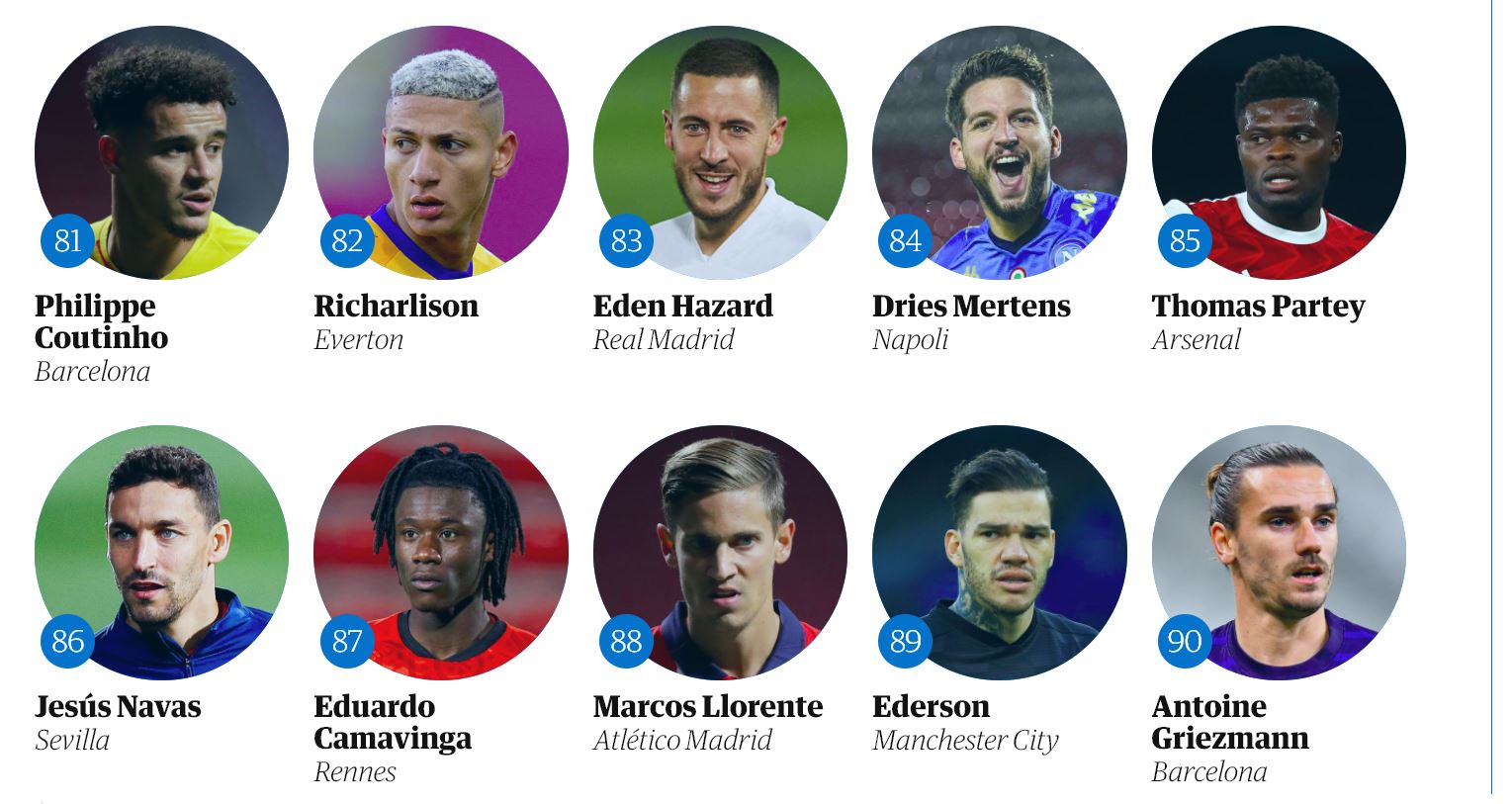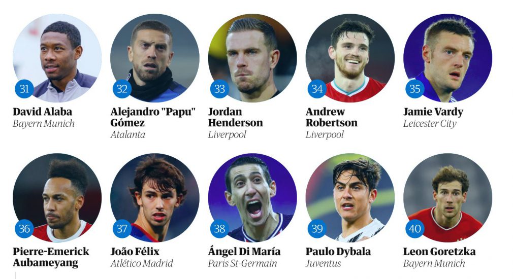 2020 ka qenë një vit i veçantë, unik për disa aspekte (negative). Pavarësisht nga kjo, as këtë vit nuk ka munguar lista e 100 futbollistëve më të mirë e The Guardian.
