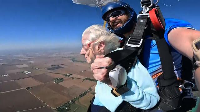 Një 104-vjeçare nga Çikago synon të futet në Librin e Rekordeve Guinness si personi më i vjetër që është hedhur me parashutë. Ajo u hodh me parashutë në një lartësi prej 4,100 metrash me ndihmën e një instruktori.