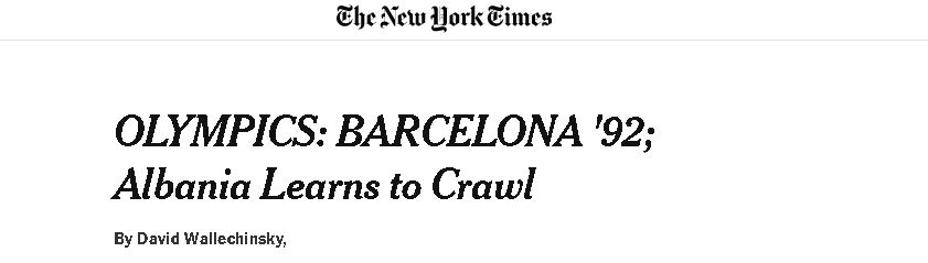 Të rikthyer në këtë kompeticion, do të jetë edhe një ekip prej 14 atletësh. Por ky ekip, i cili përfaqëson Shqipërinë, ka një histori dramatike të veten. Shqipëria është kthyer në Lojërat Olimpike. Sigurisht, shumica e njerëzve as që e dinë se ajo ishte larguar prej tyre. Shqipëria është i vetmi vend që ka braktisur katër Olimpiada radhazi. Hera e fundit dhe e vetme që atletët shqiptar garuan në Lojërat Olimpike ishte në vitin 1972, në Mynih të Gjermanisë.