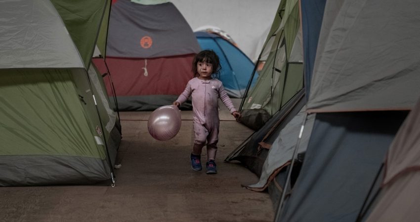 Një fëmijë emigrantësh strehohet në një magazinë ndërsa prindërit e saj presin për të kërkuar azil në Shtetet e Bashkuara të Amerikës. Fotografia: Daniel Ochoa de Olza/AP.