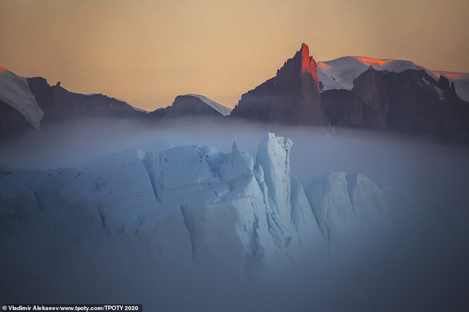 Kjo shkrepje mahnitëse nga Vladimir Alekseev tregon një fenomen natyror shumë të rrallë, mjegullën mbi një ajsberg. Fotografia është bërë në Grenlandë.