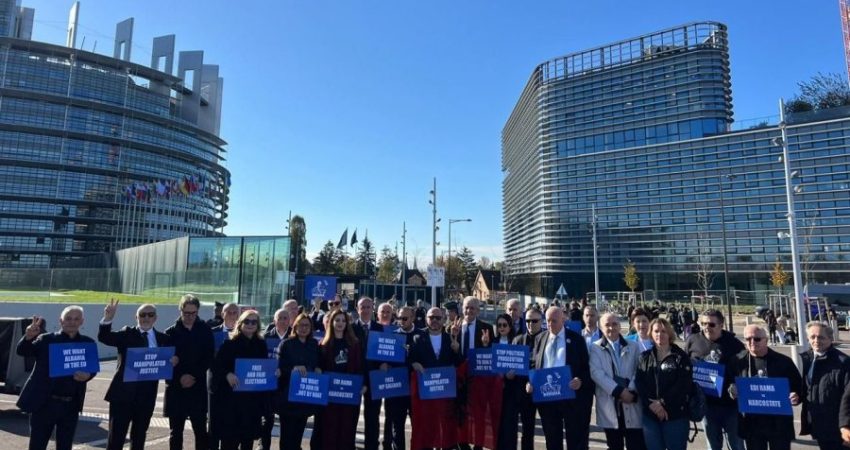 Nga Gazeta ‘Si’- Një grup prej rreth 30 deputetësh të Partisë Demokratike kanë protestuar sot para Parlamentit Europian.