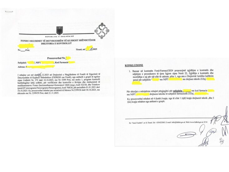 Fondi i sigurimit të detyrueshëm të kujdesit shëndetësor kërkon zgjidhjen e kontratës me afro 360 farmaci që japin barna me rimbursim për pacientët si dhe ndjekjen e procedurave penale për disa prej tyre me argumentin e faturave fiktive për gati 10 barna.