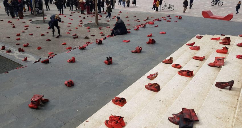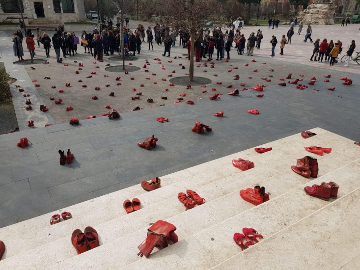 8 Marsi/ “Këpucët e kuqe” në Sheshin Skënderbej si mesazh kundër dhunës