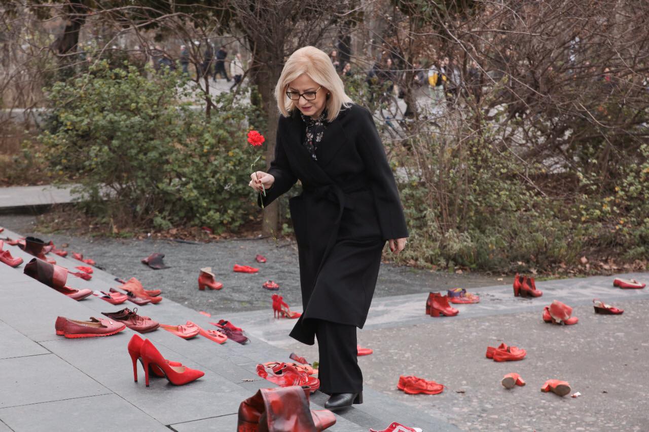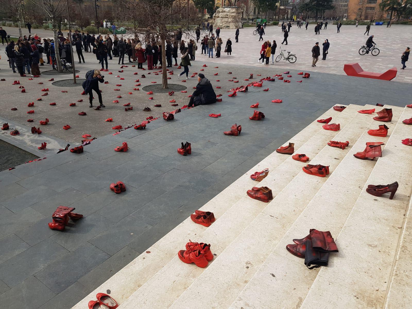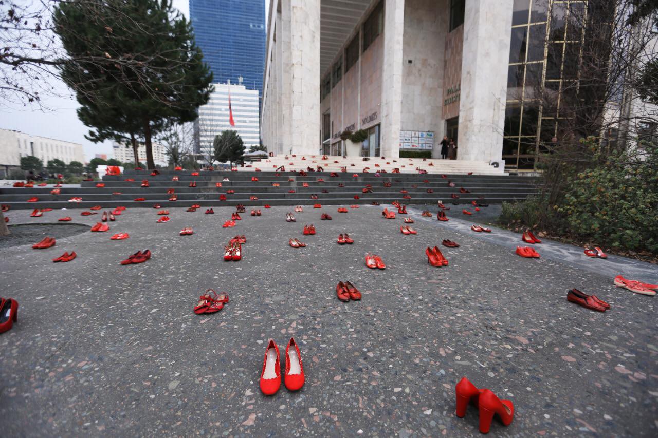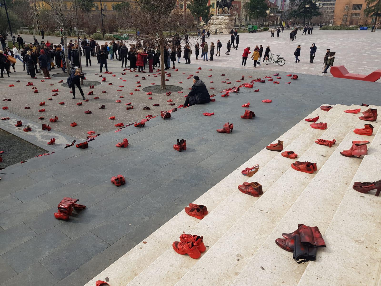 8 Marsi/ “Këpucët e kuqe” në Sheshin Skënderbej si mesazh kundër dhunës