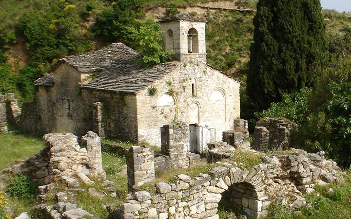 Manastiri i Kamenos ndodhet 2 km në lindje të Delvinës dhe mendohet të jetë ndërtuar në vitin 630 e më pas është rikostrukturuar më 1580. Kisha që ndodhet në manastir është e mbuluar me çati të dyfishtë dhe përbëhet nga naosi, narteksi, altari dhe një vestibul. I përket llojit të kishave me kupolë dhe kryq. Dallohet për arkitekturën e saj dhe punimet artistike në dyer dhe dritare.