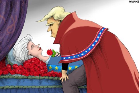 Qëndrimet publike të Donald Trump për një sërë çështjesh afrohen shumë me ato të Vladimir Putin, përfshirë statusin e Krimesë, luftën në Ukrainë dhe ndërhyrjen e rusëve në zgjedhjet amerikane. Pra, si përfundim, sulmet e Trump ndaj BE-së dhe NATO-s çojnë ujë në mullirin e Putinit.