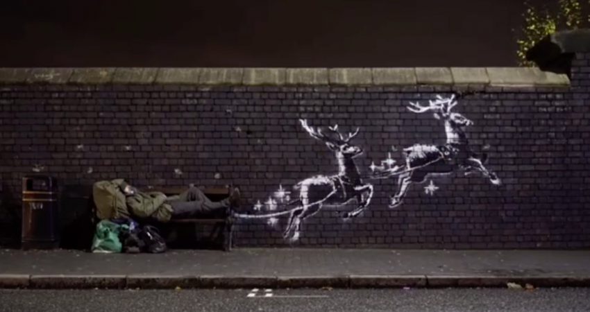 Një instilacion artistik i Bansky-t është përuruar në Birmingham të Britanisë së Madhe, këto ditë në prag Krishtlindjesh. Vepra që tregon dy drerë si ata të Babagjyshit, është pikturuar në të djathtë të një stoli publik. Në një video të publikuar nga Bansky tregohet një lypës me emrin Ryan teksa sistemohet për të kaluar natën në stol, duke u pozicionuar në vend të Babagjyshit dhe slitës së tij.