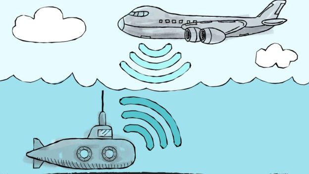 Nëndetëset komunikojnë duke përdorur valët sonare, që udhëtojnë mirë nën ujë, por e kanë të vështirë të shkëputen prej sipërfaqes ujore dhe të udhëtojnë në ajër. Ndërkohë, avionët komunikojnjnë duke përdorur radio-sinjale, që udhëtojnë mirë në ajër, por nuk depërtojnë dot nën sipërfaqen e ujit.