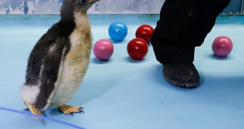 Pinguini që shihni në foto, ndërsa ndjek veterinerin që kujdeset për të, quhet Aleks dhe ka lindur prej pak javësh.