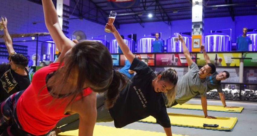 Në Kamboxhia njerëzit nuk bëjnë një joga normale… ato zhvillojnë joga me birrë në një fabrikë.