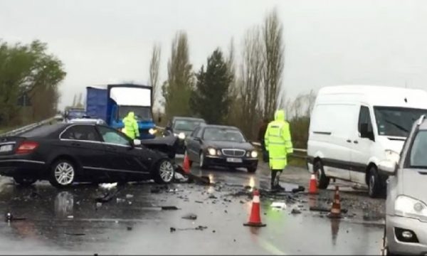Njëra nga makinat e përfshira në aksident ka pësuar dëmtime të shumta.