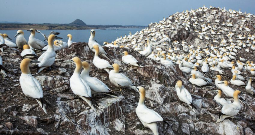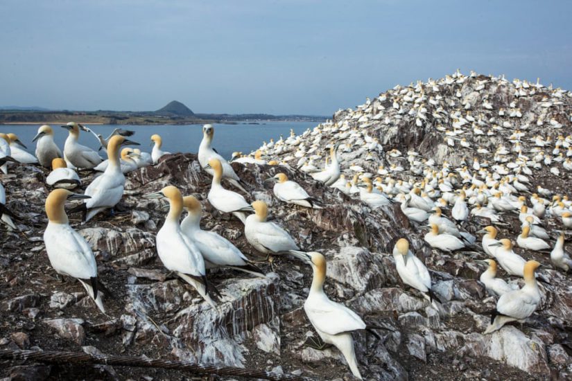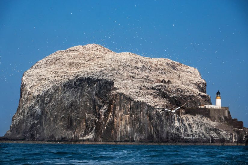 Bass Rock është një ishull i vogël i formuar nga një “plug” i shkëmbit vullkanik në Firth of Forth, Skoci. Ai përmban koloninë më të madhe në botë të Ganeteve Veriore, një nga zogjtë e detit më të mëdhenj në Atlantikun e Veriut. Pjesa më e madhe e shkëmbit është “pikturuar” e bardhë nga zogjtë.\The Guardian\