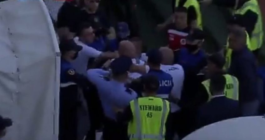 Specialistët për Hetimin e Krimit në Komisariatin e Policisë Nr.2 bënë arrestimin në flagrancë për veprat penale “Kundërshtim i punonjësit të policisë së rendit publik” e kryer në bashkëpunim, dhe “Veprime të dhunshme në aktivitete sportive” të kryera në bashkëpunim, të shtetasve: