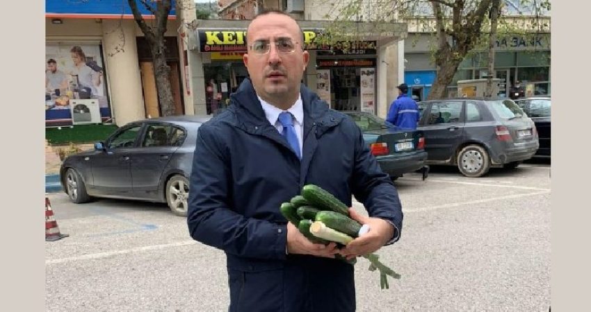 Deputeti i PD-së për Lushnjën, Saimir Korreshi, është parë në shkallet e Kuvendit, pak para fillimit të seancës parlamentare me duart plot me kastraveca dhe pras.