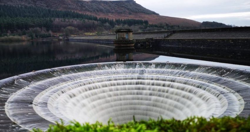 Fotografët janë grumbulluar për të parë “vrimat” të tejmbushura në mënyrë dramatike në një rezervuar në rrethin Derbyshire Peak, Angli.