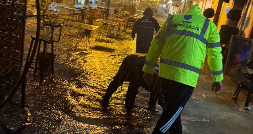 Reshjet e dendura kanë krijuar përmbytje të rrugëve kryesore të qytetit, por dhe në pedonalen e Shkodrës, apo dhe në rrugën përpara hotel Rozafës.