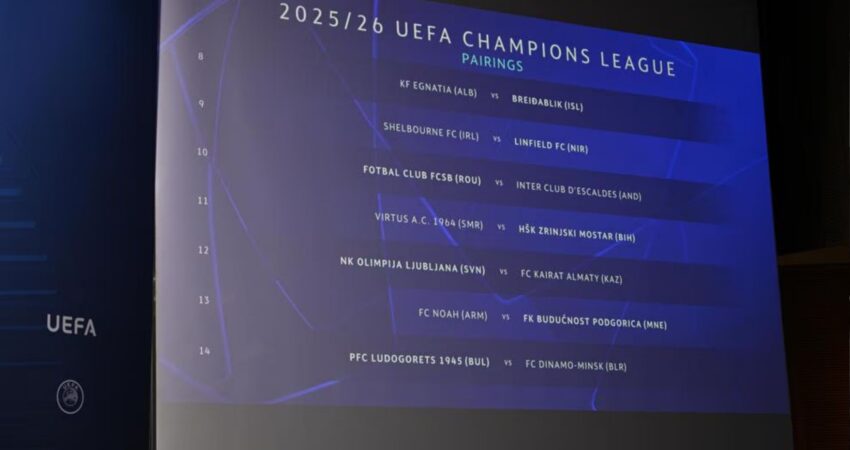 Rrugëtimi i Egnatia’s në Champions League do të kalojë nëpërmjet Islandës. Ky ishte verdikti i shortit të raundit të parë kualifikues në Nyon të Zvicrës. Jo vetëm Egnatia por edhe Shkëndija dhe Drita mësuan kundërshtarët e tyre në këtë raund që ndeshjet e para do ti zhvillojë në datat 8-9 Korrik dhe ato të kthimit një javë më pas. Sezoni 2025/26 është i 71 në histori dhe i 34 prej emërtimit “UEFA Champions League”. Starton në 8 Korrik 2025 dhe përfundon me Finalen e Budapestit, Hungari, më 30 Maj 2026. Shorti i plotë i raundit të parë kualifikues është si vijon: