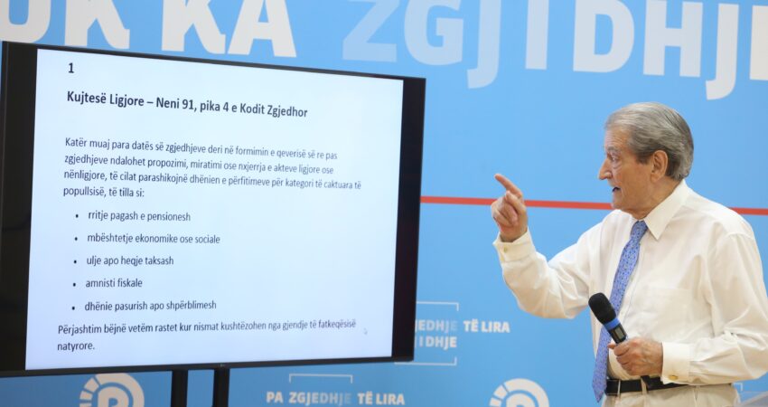 Është vetëm pak ditë para fushatës elektorale. Publikisht! Një kujtesë ligjore; neni 91 i Kodit Zgjedhor, pika 4 thotë, katër muaj para datës së zgjedhjeve, ndalohet propozimi, miratimi apo nxjerrja e akteve ligjore që parashikojnë dhënien e përfitimeve për kategori të caktuara të popullsisë si: rritje pagash e pensionesh, mbështetje ekonomike ose sociale, ulje apo heqje taksash, amnisti fiskale, dhënie pasurish apo shpërblimesh.