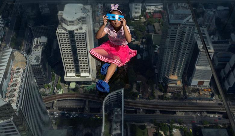 Duhet parë dy herë kjo foto. Në pamje të parë të duket si foto jo reale, por Reuters e ka shkëputur atë në Bankok në një gradaçelë të qelqtë, ku një vajzë e vogël që duket se “qëndron” mbi ajër po përpiqet të shohë më nga afër eklipsin.