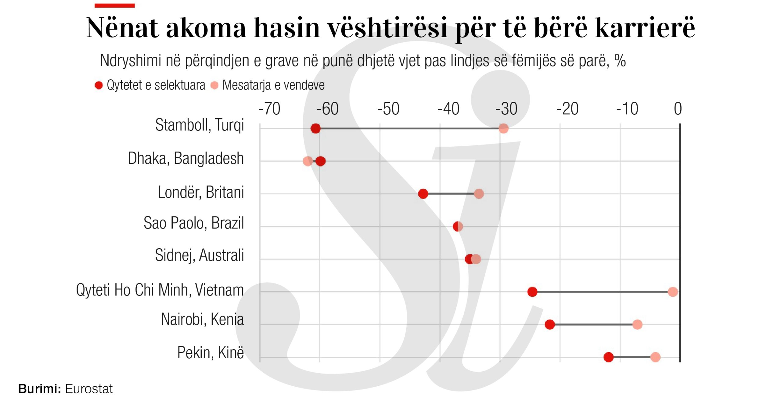 Nga Gazeta ‘Si’ – Në vitin 2024, të dhënat sugjerojnë se të kesh një karrierë dhe fëmijë është e paarritshme për shumë gra. Në të gjithë botën, 95% e meshkujve nga mosha 25 deri në 54 vjeç janë të punësuar, por vetëm 52% e femrave janë të punësuara.