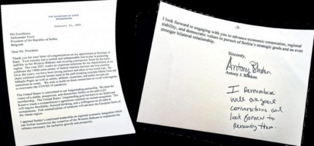 Letra e Blinken vjen vetëm një muaj pasi presidenti amerikan, Joe Biden, ia kujtoi presidentit serb qëllimin e Amerikës për dialogun Kosovë – Serbi, njohjen reciproke.