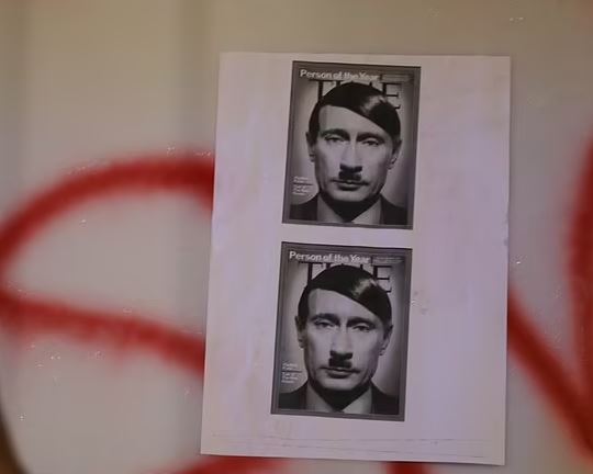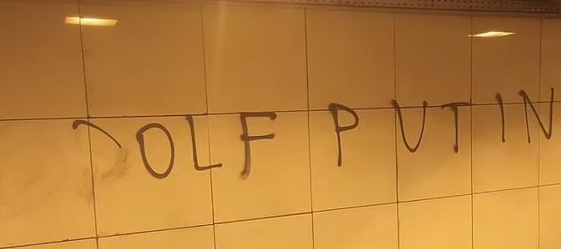 Në Rusi, njerëzit skalitën “Adolf Putin” në mure në qytetin e lindjes së presidentit rus, Shën Petersburg.