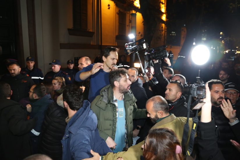 Adriatik Lapaj e Arlind Qori konfliktohen në protestë. Drejtuesi i ‘Shqipëria Bëhet’ dëbohet nga podiumi: Komunistët nuk bëhen njerëz (video)