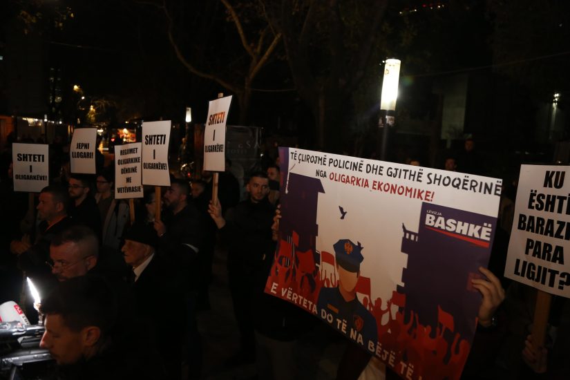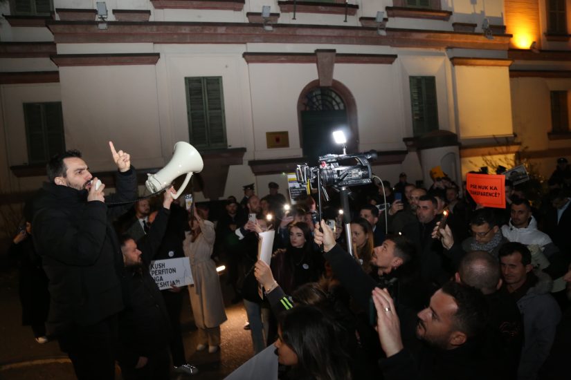 Protesta po mbahej për të kërkuar transparencë për ngjarjen ku u përfshi efektivi i policisë Azbi Spahiu i cili u hodh nga lartësia, dhe djali i biznesmenit Samir Mane.