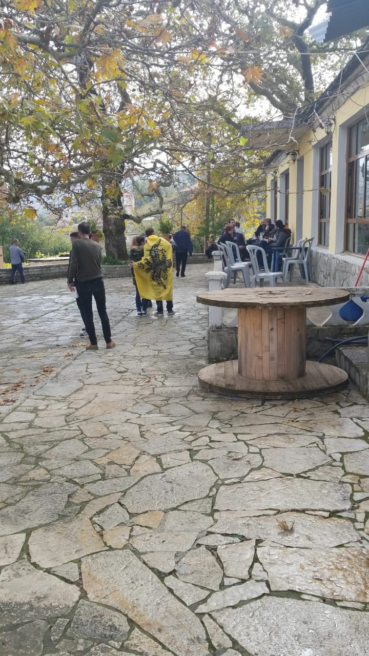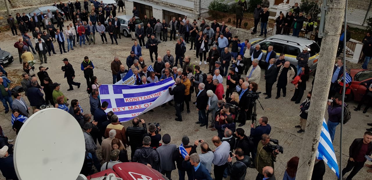 Në qendër të Bularatit u shpalos një flamur i madh grek dhe u bënë thirrje nacionaliste, ndërkohë që trupi i Kostandinos Kaçifas po shkonte drejt kishës për ceremoninë mortore.