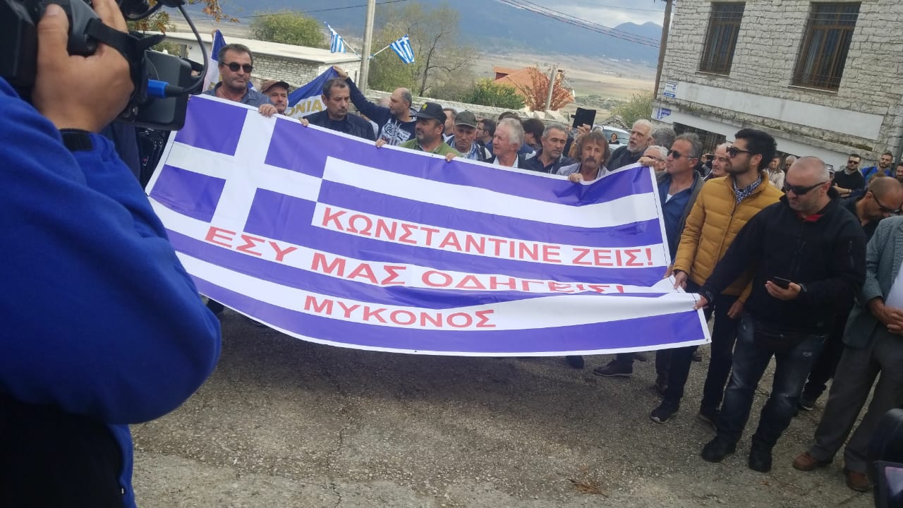 Kortezhi mortor mbanin edhe parulla të shënuara sipër disa flamujve ku shkruhej: “Maqedonia është Greqi” dhe “Konstandin ti jeton, na udhëheq dhe na prin”, si dhe kanë kënduar himnin grek dhe bënë thirrje për Vorio Epir.