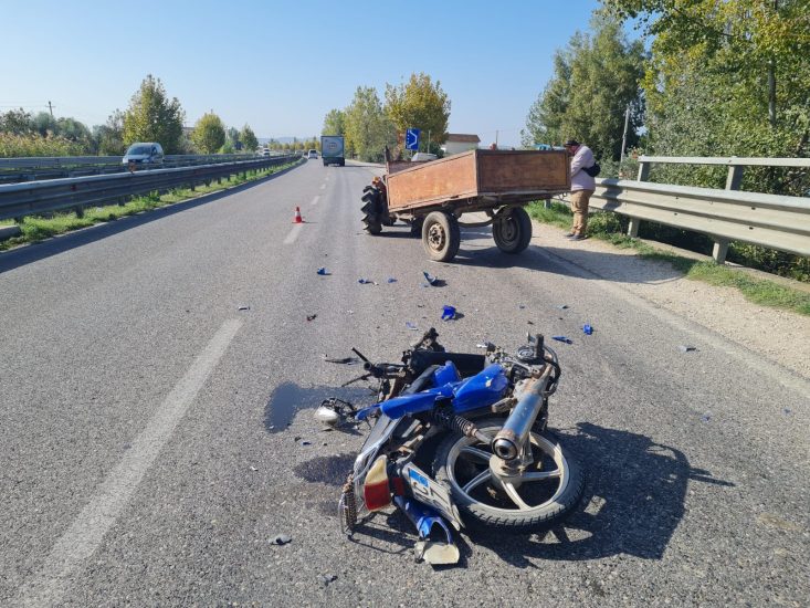 Aksidenti tragjik ndodhi kur motoçikleta më të cilën po lëvizte viktima u përplas me një mjet bujqësor. Drejtuesi i motorit, 59-vjeçari Q.Th., është përplasur në pjesën e pasme të mjetit bujqësor i cili drejtohej nga J.Pina rreth 60 vjeç. Përplasja ka qenë e fortë, duke bërë që trupi i viktimës të përfundojë mbi rimorkion e zetorit.