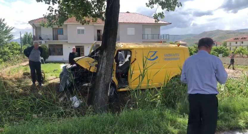 Shoferi i postës, Kristi Plluska pas një përplasje me një pemë, u bllokua në makinë, ndërsa forcat e zjarrfikëses me vështirësi e nxorën prej aty.