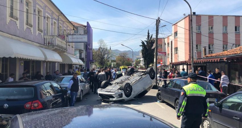 Një aksident si në skenat e filmave hollivudanë, ka ndodhur rreth ditës së sotme në Shkodër. Një mjet i bardhë luksoz tip “Volkswagen”, që vinte me shpejtësi nga qendra e qytetit në drejtim të Poliklinikës është përplasur me një tjetër mjet që dilte nga një parking.