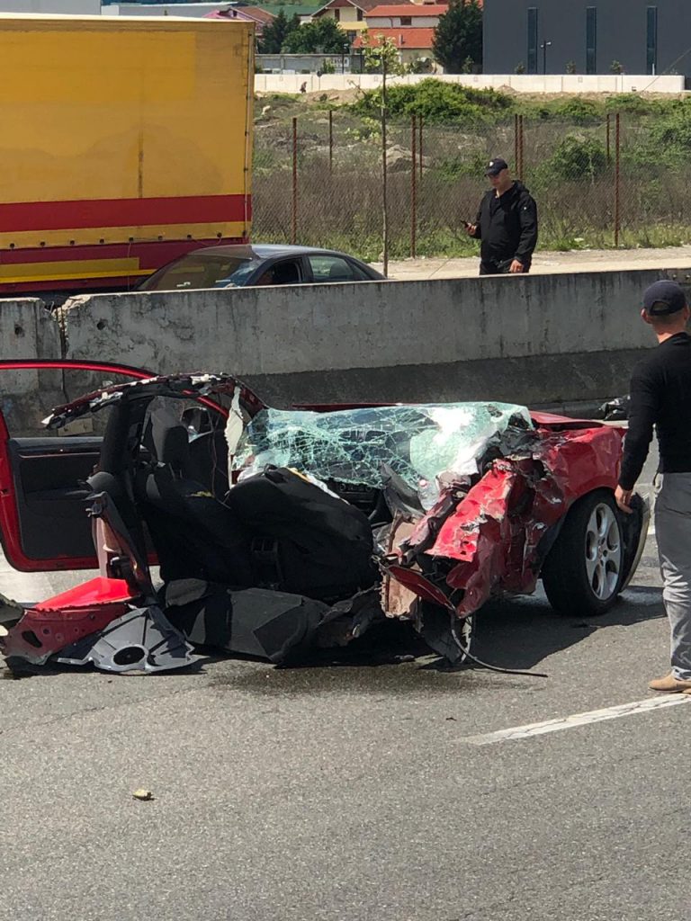 Mësohet se makina kishte hyrë poshtë një kamioni. Sikurse shihet edhe nga fotot mjeti është shkatërruar i tëri, por fatmirësisht nuk ka të lënduar. Pronari i automjetit ka dalë vetë nga makina.