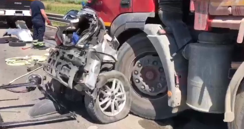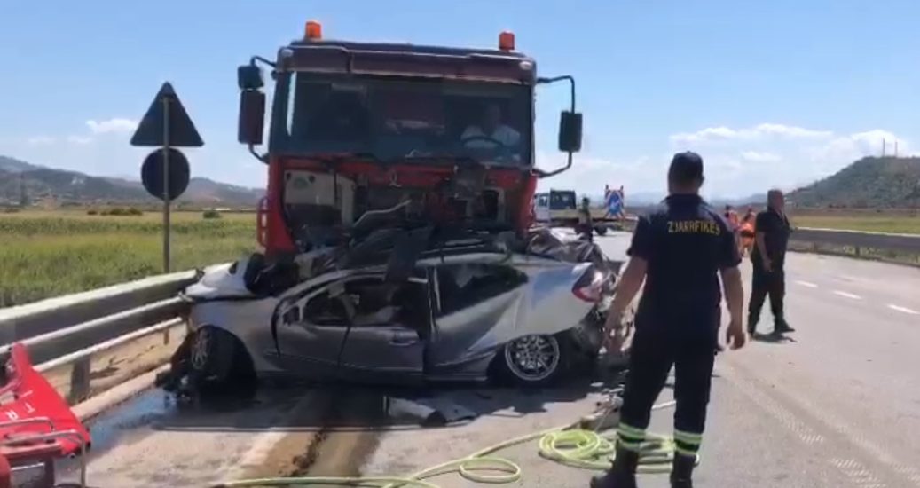 Ngjarja ka ndodhur në vendin e quajtur Bishti i Zhurit, ku pas përplasjes, automjeti tip “Mercedes Benz C Class’, është bërë copash dhe ka përfunduar nën rrotat e kamionit që transportonte inerte.