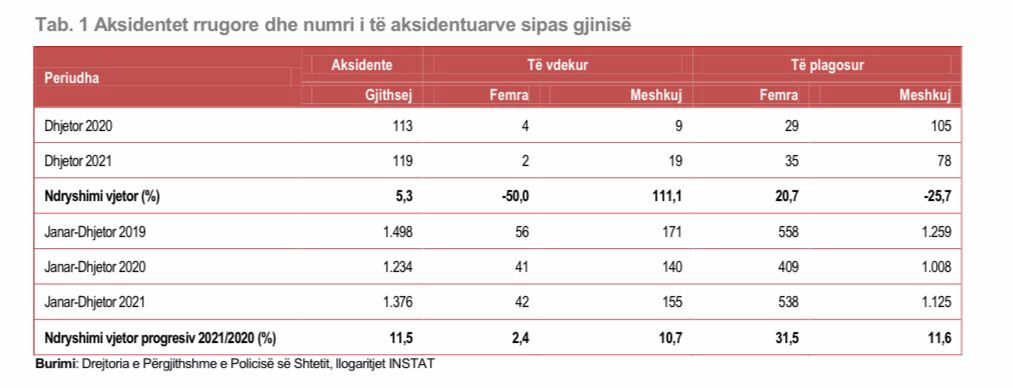 Gjatë dhjetorit të vitit të kaluar edhe numri i të vdekurve nga aksidentet është rritur krahasuar më të njëjtin muaj të vitit 2020.