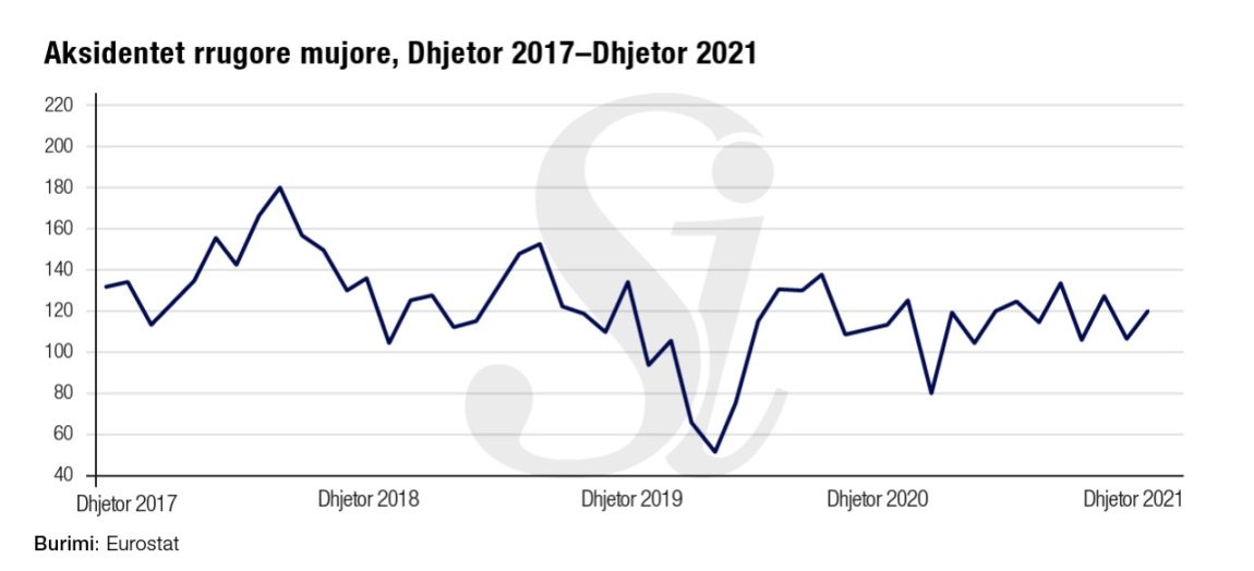 Numri i të vdekurve nga aksidentet rrugore në dhjetor është 21 persona, nga 13 persona të vdekur në të njëjtën periudhë të vitit 2020.