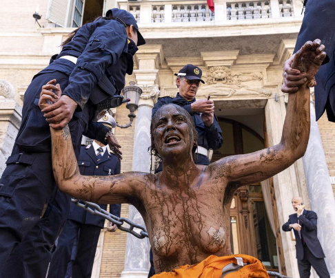 Aktivistët e klimës në Itali zhvishen dhe lyhen me baltë