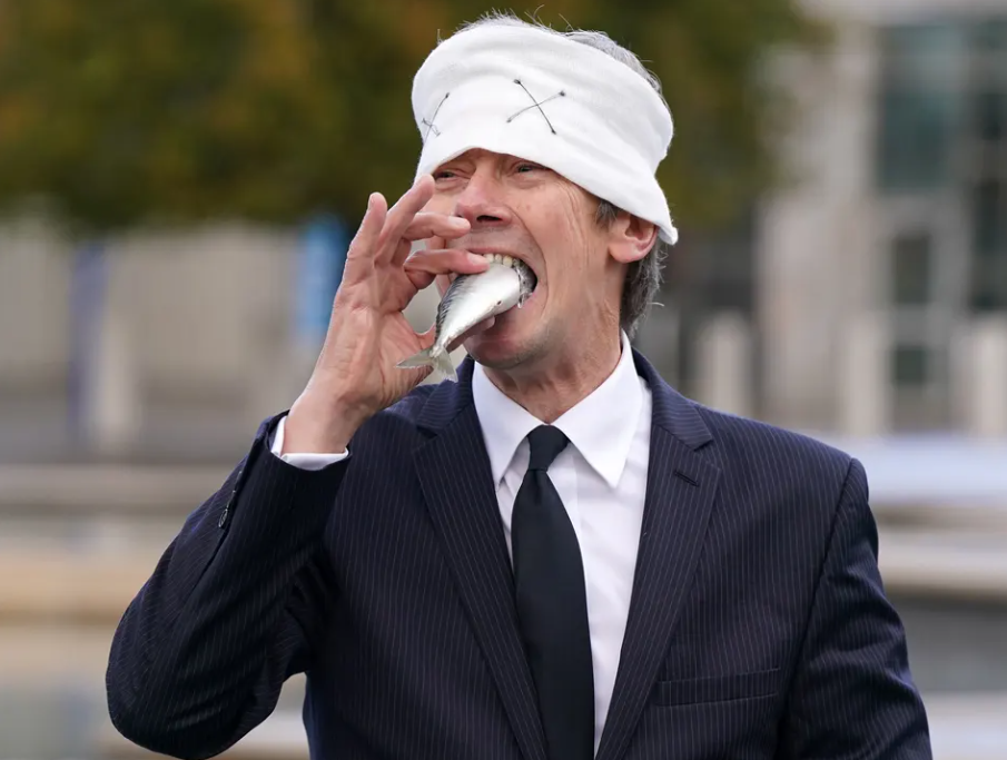 Aktivistët me peshq të ngordhur në gojë protestojnë për rritjen e peshkimit të salmonit