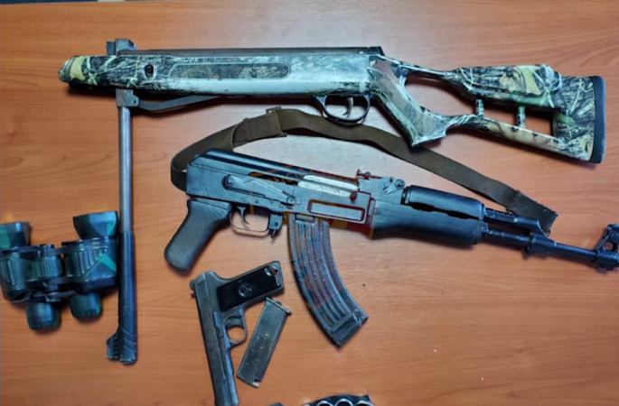 Ndërkaq nga kontrolli i ushtruar në banesën e shtetasve: S.K., dhe A.K., janë gjetur dhe sekuestruar në cilësinë e provës materiale 1 armë zjarri automatik me 4 krehra, një pistoletë me krehër me fishekë, një armë e ftohtë thikë, përforcues grushti, doreza dhe vegla punë të dyshuara të vjedhura.