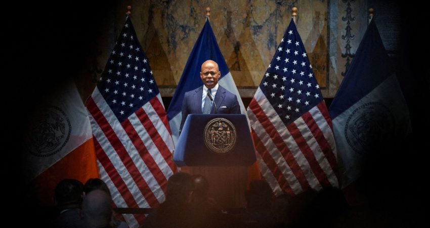 Eric Adams gjatë një deklarate për mediat amerikane