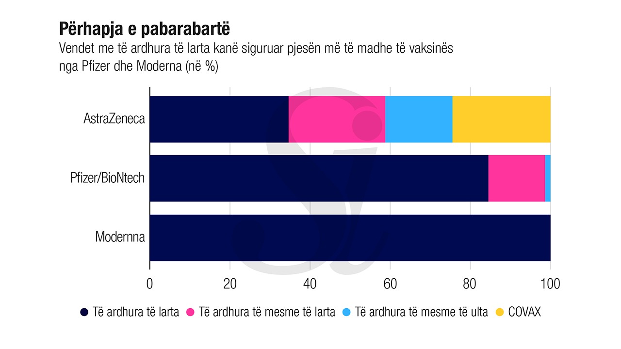 Vendet me të ardhura të larta kanë siguruar  85% të vaksinave nga Pfizer dhe Moderrna, sipas firmës së kërkimit me bazë në Londër,  Airfinity Ltd.
