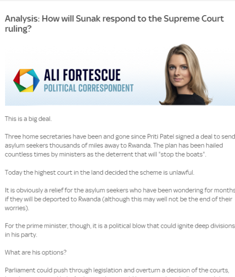 Duke dhënë vendimin, Lordi Reed theksoi se “traktate të tjera ndërkombëtare” përtej GJEDNJ ishin pjesë e çështjes dhe ai tha se Gjykata e Lartë “nuk është e shqetësuar për debatin politik”.