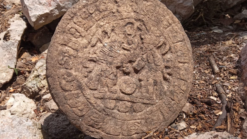 Sipas një deklarate nga Instituti Kombëtar i Antropologjisë dhe Historisë (INAH) i Meksikës, pjesa rrethore, me diametër pak më shumë se 32 centimetra (12,6 inç) dhe me peshë 40 kilogramë (88 lb), shfaq shkrim hieroglifik që rrethon dy lojtarë që qëndrojnë pranë topit.