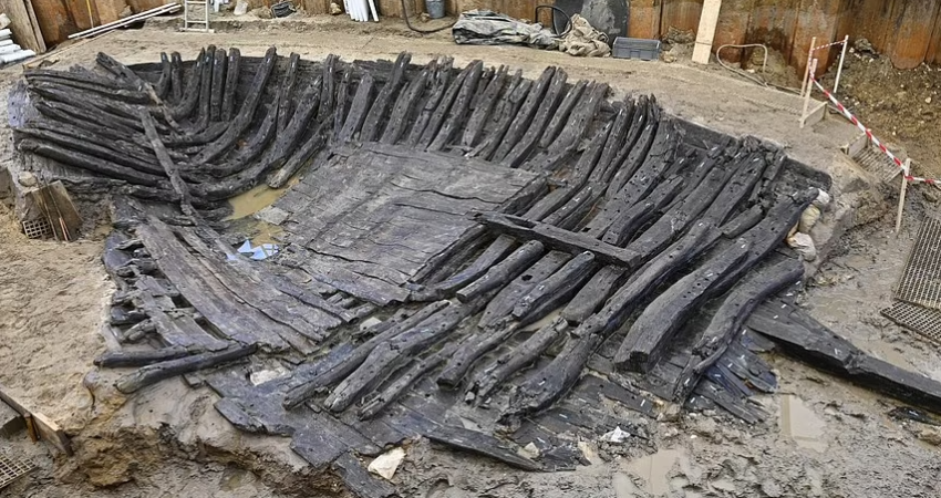 Anija 40 metra e gjatë, e cila u zbulua pranë Bordeaux, Francë, përbëhet nga trarë që nuk kanë qenë në kontakt me oksigjenin apo dritën për një kohë të gjatë, duke rezultuar në dehidratimin dhe ndarjen e tyre.