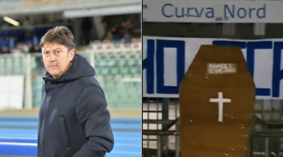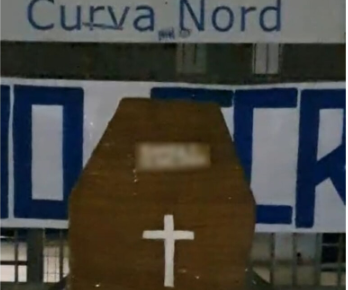 Tifozët kanë lënë jashtë stadiumit pankartë që i uron vdekjen presidentit bardheblu, e plotësuar me skicën e një arkivoli. Pamjet tashmë po qarkullojnë në rrjetet sociale.