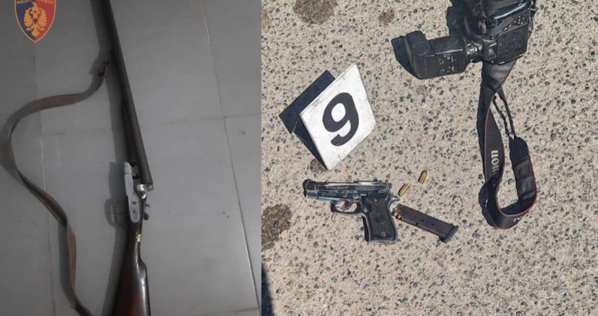 Në cilësinë e provës materiale u sekuestruan 1 armë zjarri pistoletë, 1 armë gjahu çifte, 2 celularë dhe bimët e dyshuara narkotike kanabis.