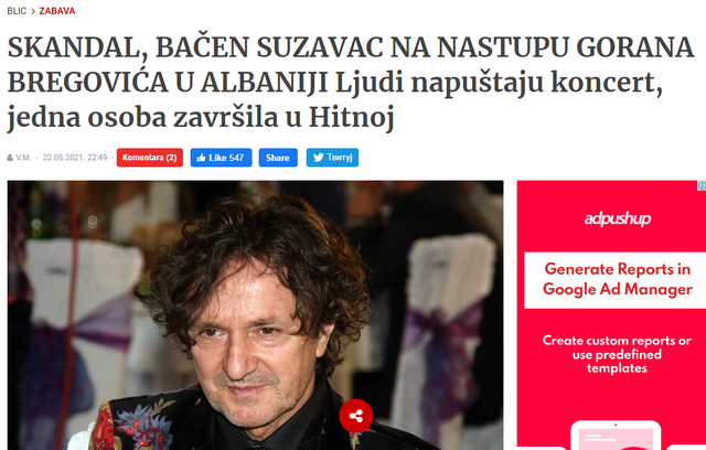 Ndërkohë, mediat serbe e kanë cilësuar një skandal atë që ka ndodhur në koncertin e këngëtarit të njohur. Disa prej tyre janë përqëndruar veçanërisht në incidentin me gazin lotsjellës.